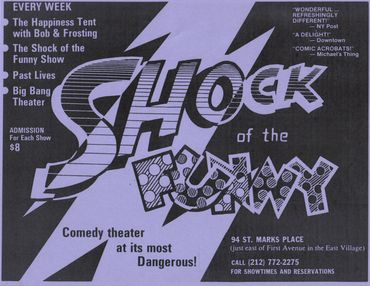 Shock of the Funny gave 325 performances in New York City from 1986-1991. Founded and directed by Mike Player, the comedy theater troupe was called "Wonderful...refreshingly different!" by Bill Ervolino of the New York Post. Cast members included Michael Kostroff ("The Wire") and Oscar Nunez ("The Office" "The Lost City"). Click here for reviews.